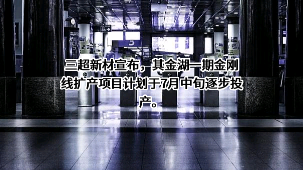 同花顺金融研究中心7月2日讯,有投资者向三超新材(300554)提问,关于公司金湖一期项目投产时间及二期项目的建设情况。公司回答表示,您好!公司金湖一期金刚线扩产项目计划于7月中旬逐步投产。二期项目的建设将视一期项目的实施情况再决定。谢谢关注! 点击进入互动平台 查看更多回复信息 关注同花顺财经(ths518),获取更多机会